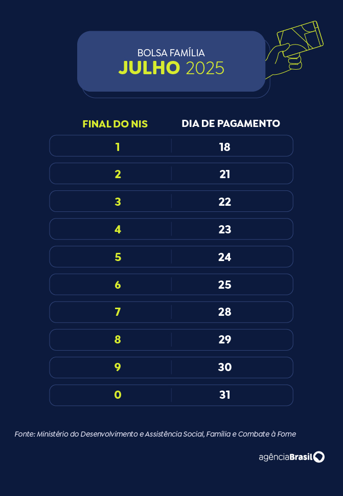 Brasília (DF) 16/07/2025 – Calendário Bolsa Família 2025 – Julho. Arte EBC