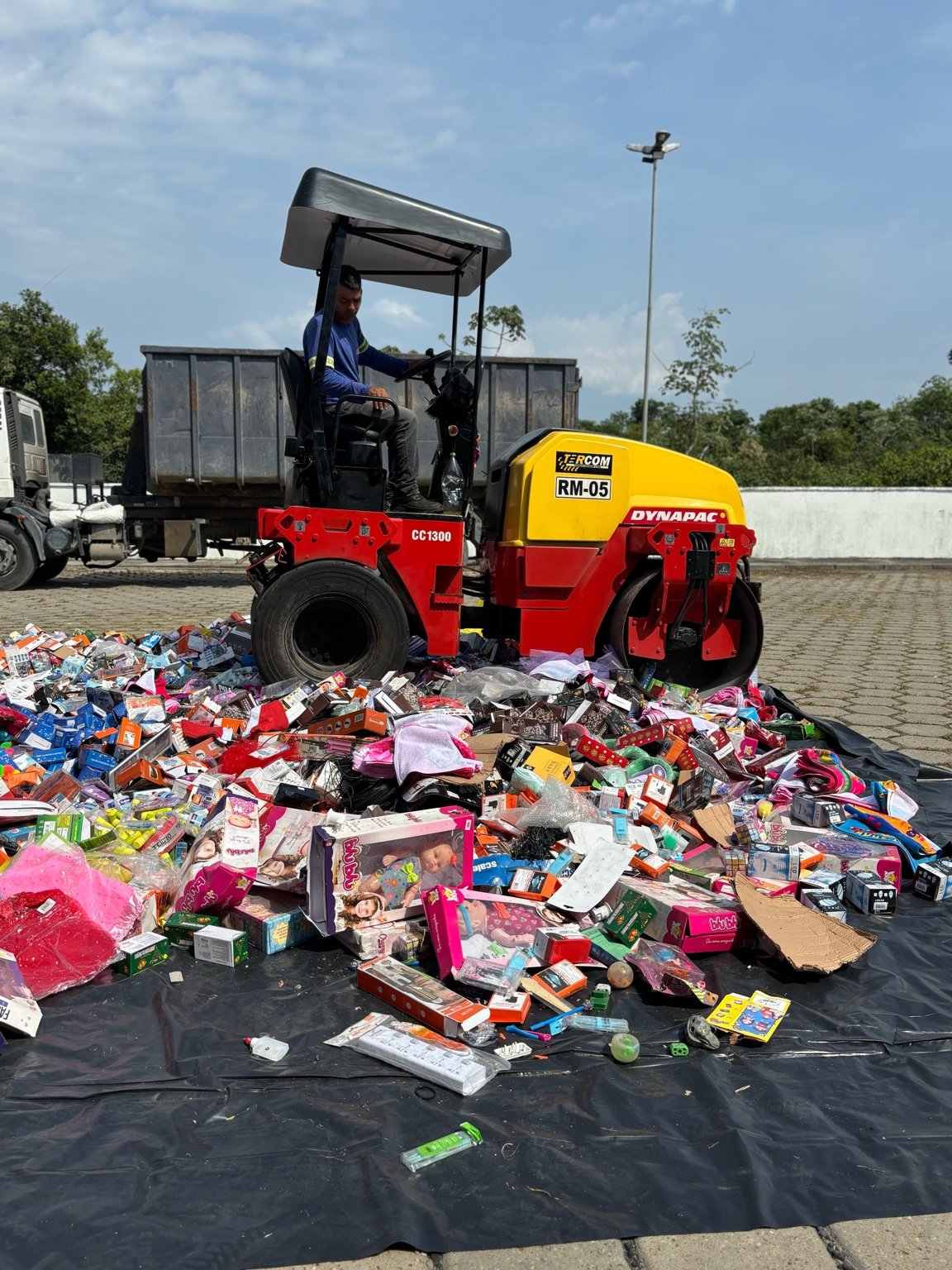 Uma empresa devidamente certificada, usa o maquinário de rolo compressor, garantindo a inutilização e reaproveitamento dos produtos. Não é aplicado incineração, assim, os materiais podem ser reaproveitados como matéria-prima através da gestão correta dos resíduos. Fechando o ciclo entre apreensão, inutilização e reciclagem.