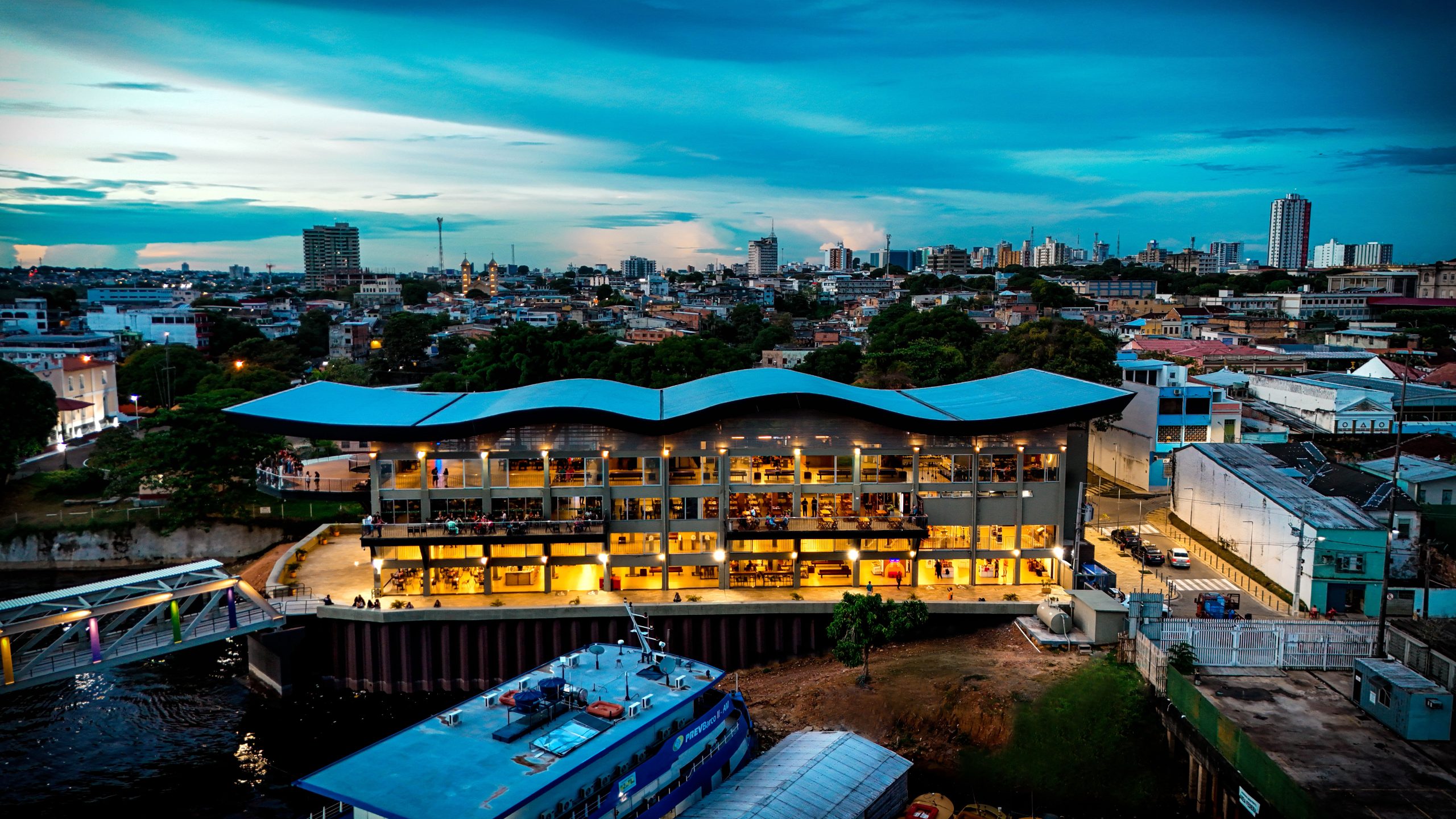 O píer turístico Manaus 355, que funciona a partir do mirante, fica aberto até as 18h30, não abrindo nos dias 25/12/25 e 1º/1/2026.