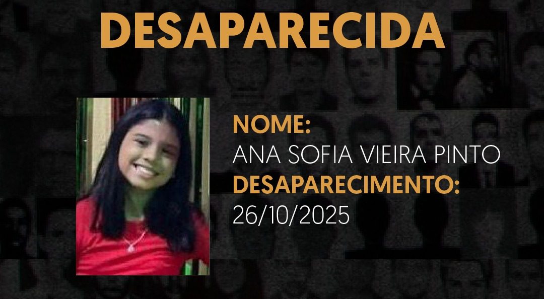 Manaus (AM) – A Polícia Civil do Amazonas (PC-AM), por meio da Delegacia Especializada em Proteção à Criança e ao Adolescente (Depca), solicita a divulgação da imagem de Ana Sofia Vieira Pinto, de 11 anos, que desapareceu no domingo (26/10), no conjunto João Paulo, bairro Nova Cidade, zona Norte.