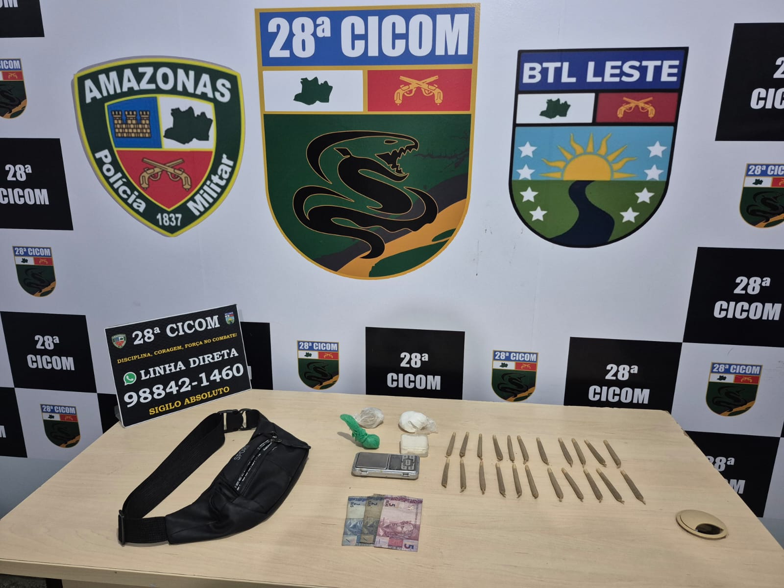 Já por volta de 21h, policiais militares da 28ª Cicom realizavam patrulhamento pelo bairro Colônia Antônio Aleixo, quando prenderam um homem, de 21, na rua Alberto Campainha. Com ele, foram apreendidos 59 gramas de cocaína, 40 gramas de oxi, 22 cigarros de maconha, uma balança de precisão e R$ 9 em espécie. O caso foi encaminhado par ao 14º DIP.
