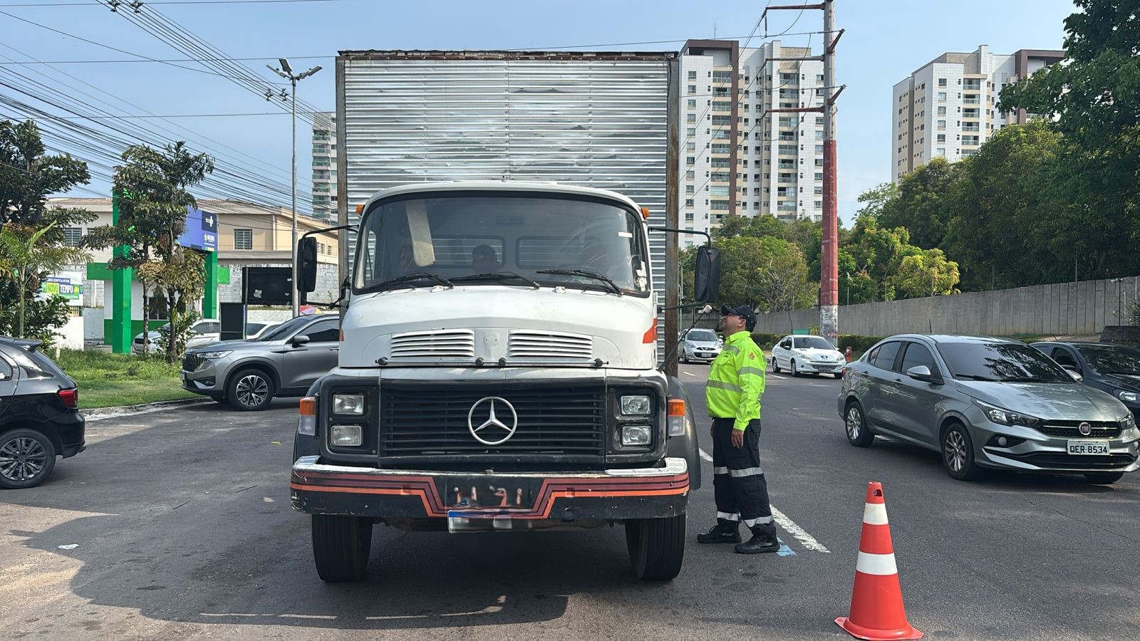 Manaus (AM) – A Prefeitura de Manaus, por meio do Instituto Municipal de Mobilidade Urbana (IMMU), realizou, na manhã desta segunda-feira, 3/11, uma operação de fiscalização voltada ao controle de tráfego de veículos pesados na avenida Mário Ypiranga Monteiro, zona Centro-Sul da capital.