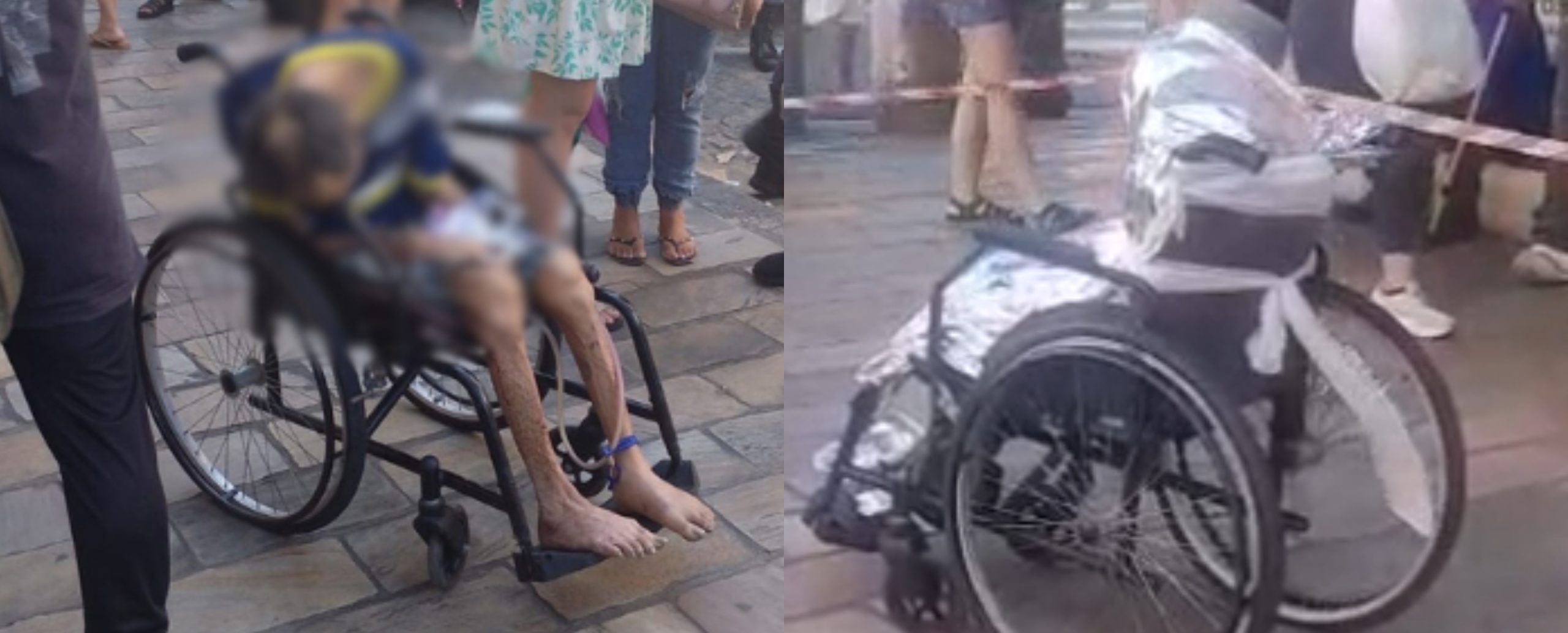 Nas imagens, foi possível visualizar o corpo do idoso na cadeira de rodas, aparentando estar desacordado. Em outro momento, o cadáver do idoso já estava isolado, com papel alumínio, após constatação do óbito pelo Serviço de Atendimento Móvel de Urgência (Samu). A Polícia Militar do Amazonas (PMAM) foi acionada e deteve o filho do idoso.